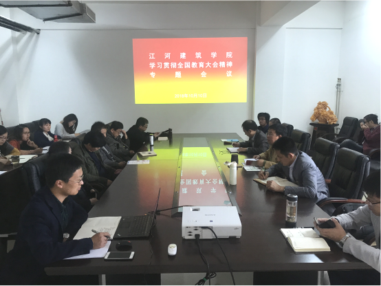 10月10日下午,学院理论学习中心组在建筑学馆B621召开学习贯彻全国教育大会精神专题会议,暨党委理论学习中心组(扩大)专题学习。本次会议由学院领导班子、党委委员、支部书记和各支部党员代表参加,党委书记安立鸿同志主持。